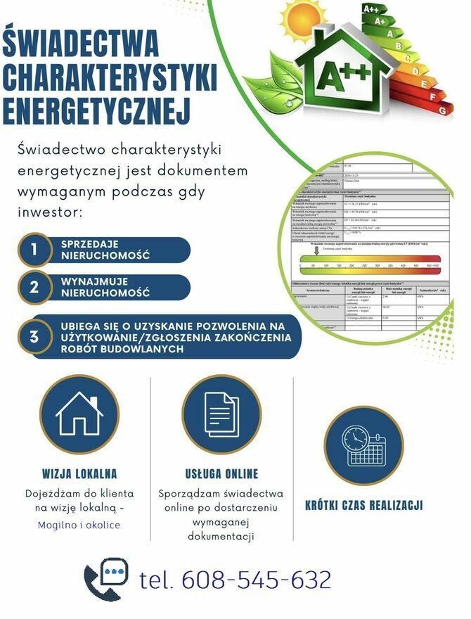 Sporządzanie Świadectw Charakterystyki Energetycznej (ŚCHE) dla mieszkań, domów i lokali. Szybki termin realizacji. zapraszam do kontaktu.tel: 608 - pokaż numer telefonu -